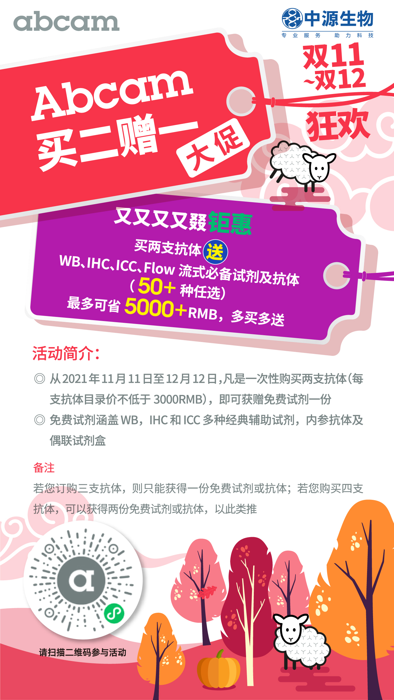 11.11火力全开,abcam促销又双叒叕来了~ 抗体买二赠一,多买多送!!!2021-11-17 13:46:00.0