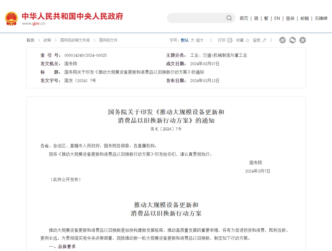 日前,国务院印发《推动大规模设备更新和消费品以旧换新行动方案》,其中实施设备更新行动指出,要“提升教育文旅医疗设备水平,推动符合条件的高校、职业院校(含技工院校)更新置换先进教学及科研技术设备,提升教学科研水平。严格落实学科教学装备配置标准,保质保量配置并及时更新教学仪器设备。加强优质高效医疗卫生服务体系建设,推进医疗卫生机构装备和信息化设施迭代升级。”