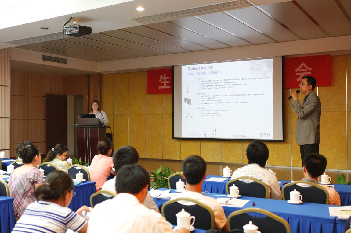 最后,来自BD公司制药系统部门生物工艺市场专家Connie Hetzler女士介绍了目前国际上敏感药物包材的最新进展,以及BD公司著名的预灌充注射器产品。