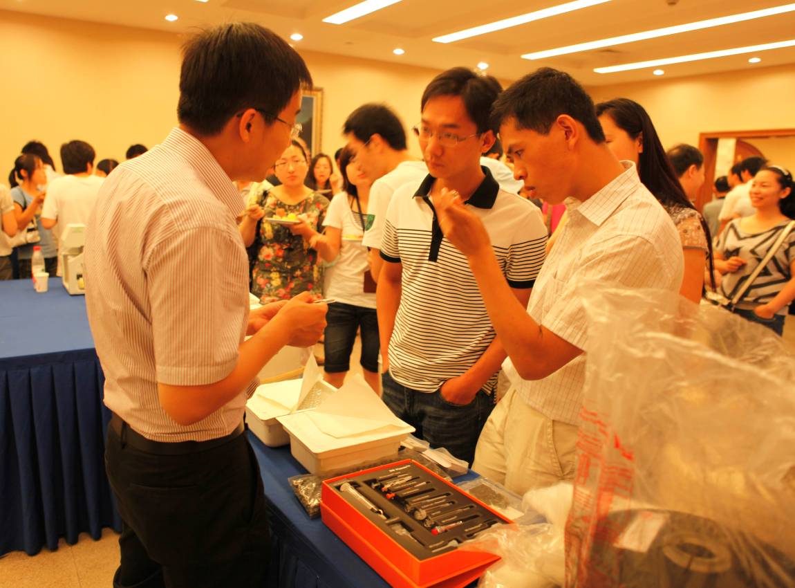 讨会工作人员充分利用讲座中间的茶歇时间,与参会的客户展开互动交流和产品展示。