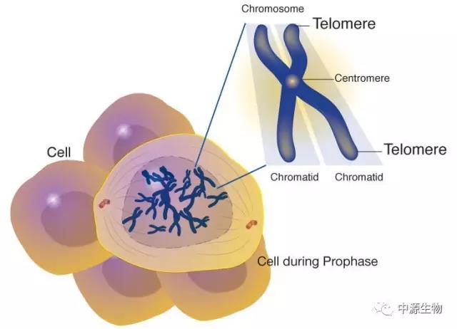端粒(Telomere)是染色体末端的DNA重复序列,作用是保持染色体的完整性和控制细胞分裂周期。 细胞分裂一次,由于DNA复制时的方向必须从5'方向到3'方向,DNA每次复制端粒就缩短一点。一旦端粒消耗殆尽,细胞将会立即启动凋亡机制,即细胞走向凋亡。