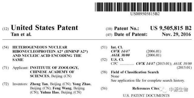 中国科学院动物研究所端粒与衰老研究组的一项发明在获得中国发明专利后,近日正式获得美国国际专利授权(专利号 9505815),专利发明人为谭铮,赵勇,王峰,郝玉华。该专利提供了一种有效而且可控的延长哺乳动物细胞端粒的技术,避免了直接激活端粒酶而可能带来的致癌或其它风险。该专利可应用于任何需要保持、改善、提升细胞增殖活力的领域,如免疫细胞扩增用于癌症的细胞治疗、其它疾病的细胞治疗、抗衰老保健美容,干细胞,动物克隆等应用和科研方面。