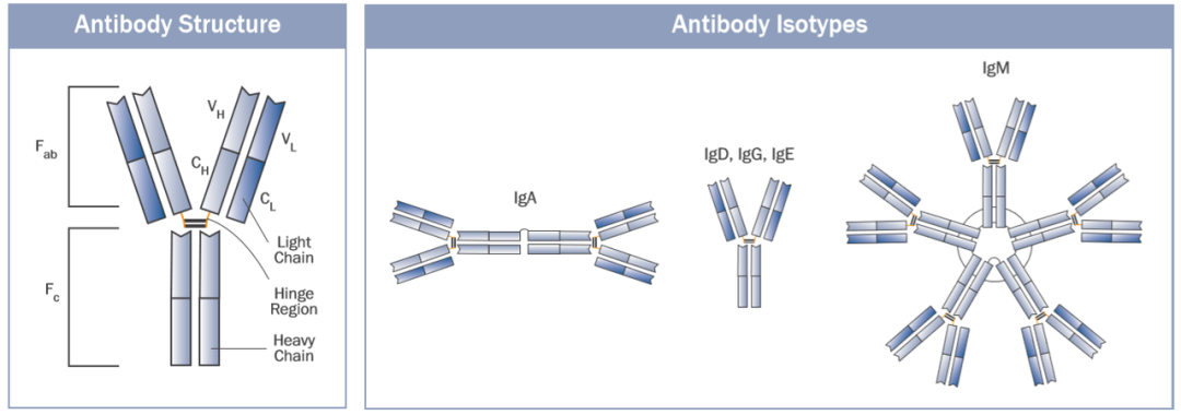 抗体结构与抗体类型示意图