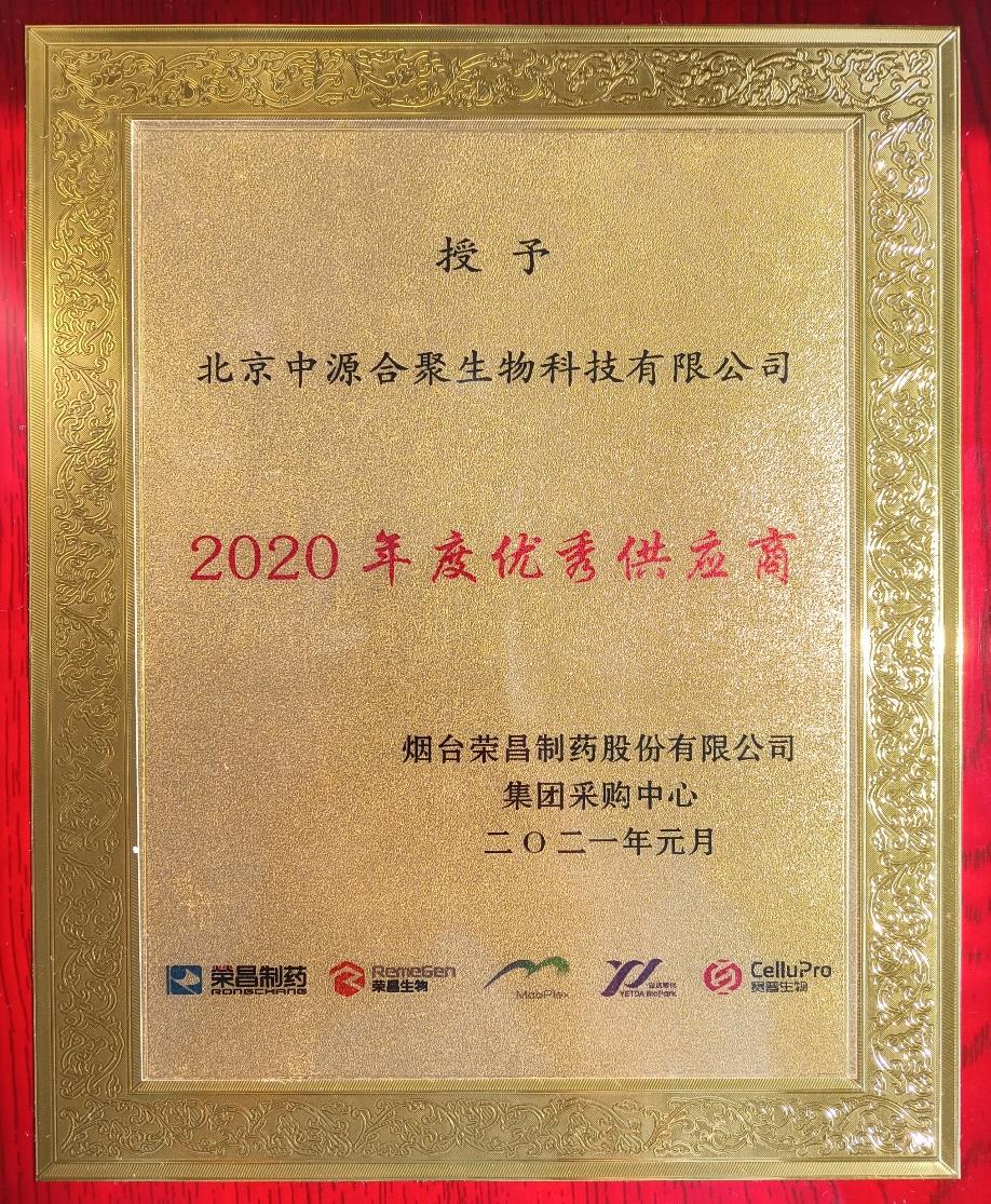 喜讯 | 中源公司荣获荣昌生物2020年度优秀供应商