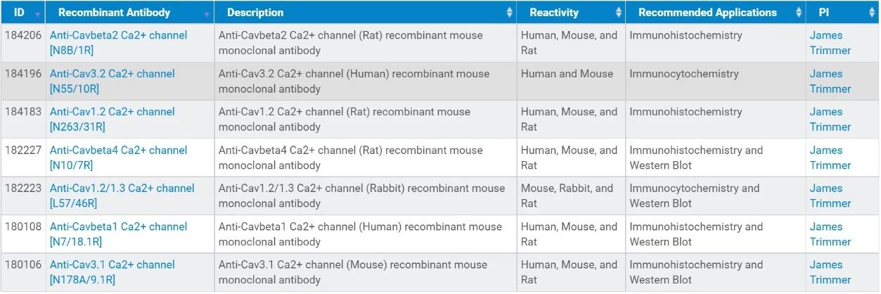 首批收藏的抗体包括由来自加利福尼亚大学,戴维斯医学院,生理学与膜生物学杰出教授,詹姆斯·特里默博士(James Trimmer, Ph.D.)设计和测试的27种抗体。Trimmer实验室,使用这些抗体对神经元中离子通道的功能进行研究,将对NABOR亲和力试剂进行质量控制。