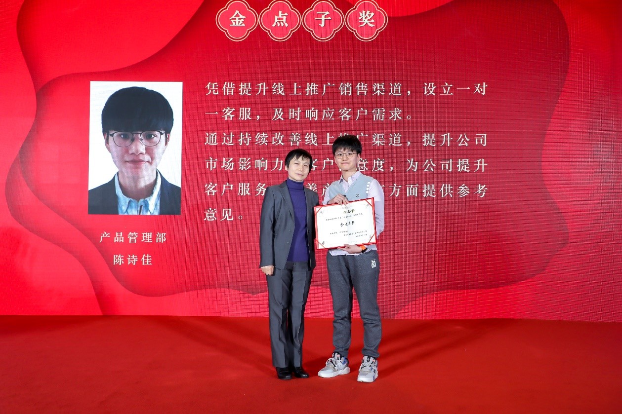 大会颁发的第二个奖项是金点子奖,基层的每一个声音中源公司都非常重视,公司的发展都离不开员工们的思想涌动和创新思维。本奖项由平台体系副总裁曹雪芸为获奖者陈诗佳颁奖。